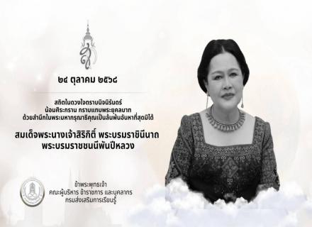 สมเด็จพระนางเจ้าสิริกิติ์ พระบรมราชินีนาถ พระบรมราชชนนีพันปีหลวง เสด็จสวรรคต เมื่อวันที่ 24 ตุลาคม 2568 พระผู้เสด็จสู่สวรรค์คาลัย น้อมสำนึกในพระมหากรุณาธิคุณเป็นล้นพ้นอันหาที่สุดมิได้ ข้าพระพุทธเจ้า นายบุญชัย พุกใหญ่ ข้าราชการครู และบุคลากรทางการศึกษา