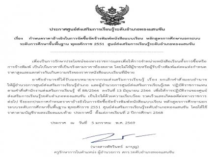 ประกาศศูนย์ส่งเสริมการเรียนรู้ระดับอำเภอทองแสนขัน เรื่อง กำหนดราคาอ้างอิงในการจัดซื้อจัดจ้างแบบหนังสือเรียน